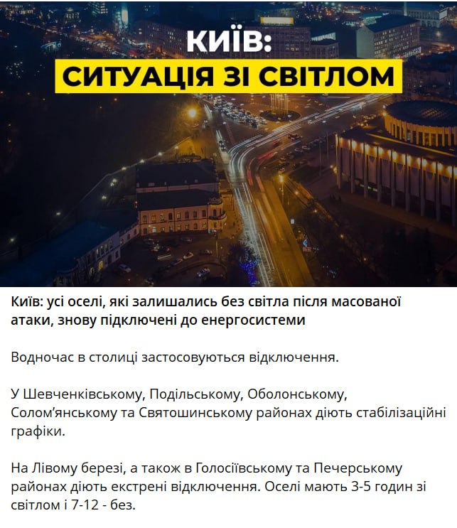 13.46 Экстренные отключения света вводятся по всему Киеву, сообщает гендиректор Yasno.