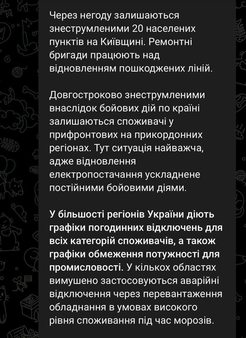 Поступают последние новости об энергообеспечении столицы и регионов Украины.