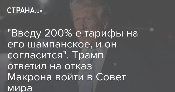 "Никто его (Макрона в совете - Ред.) не хочет, потому что он очень скоро покинет свой пост. Если они будут вести себя враждебно, я введу 200%-ный тариф на его вино и шампанское, и он присоединится", - сказал президент США.