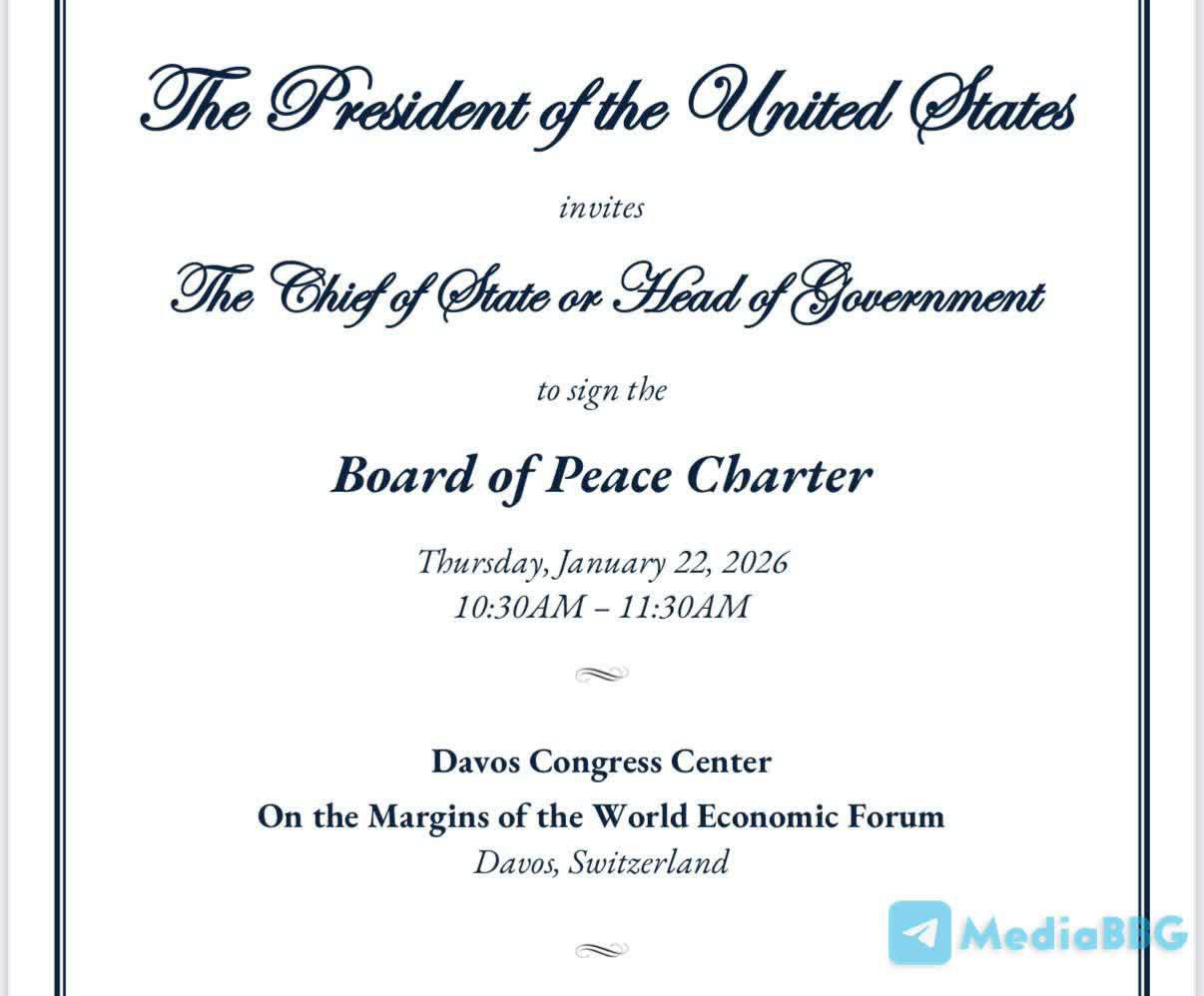 Также стало известно, что церемония подписания устава Совета мира состоится в четверг, 22 января 10:30 утра в Давосе.
