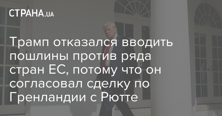 Трамп отказался вводить пошлины против ряда стран ЕС, потому что он согласовал сделку по Гренландии с Рютте