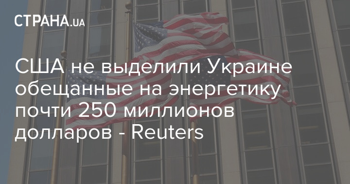 США не выделили Украине обещанные на энергетику почти 250 миллионов долларов - Reuters