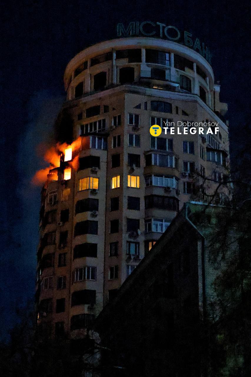 В Шевченковском районе зафиксировано попадание БпЛА в 22-этажный жилой дом на уровне 16–17 этажей. Спасатели ликвидировали пожар на площади 90 кв. м.