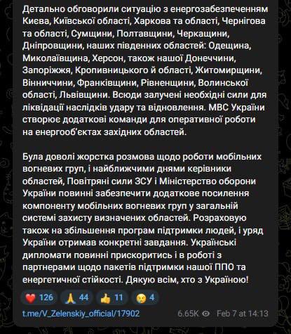 "Был довольно жесткий разговор о работе мобильных огневых групп, и в ближайшие дни руководители областей, Воздушные силы ВСУ и Министерство обороны должны обеспечить дополнительное усиление компонента мобильных огневых групп в общей системе защиты определенных областей", - сказал Зеленский.