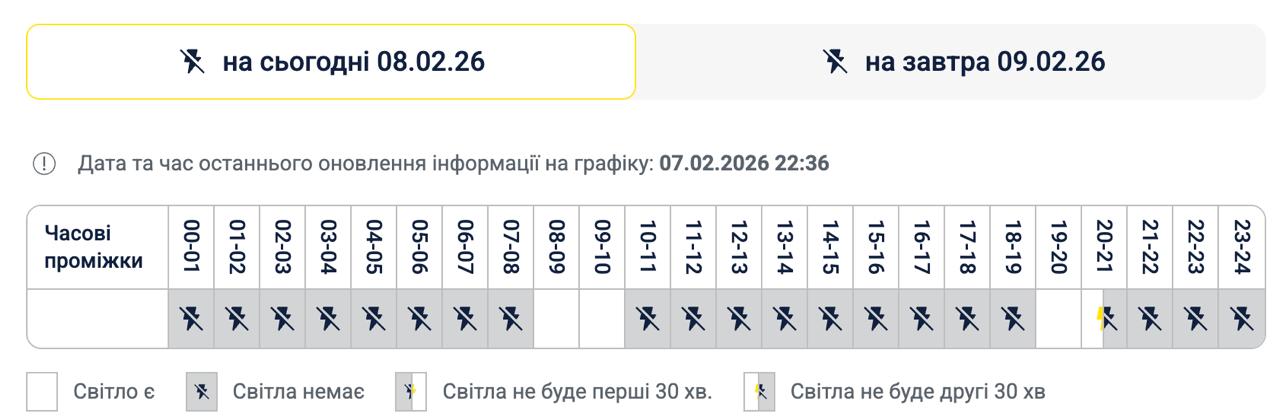 При этом во многих домах, судя по расписанию на 8 февраля, света не будет более 20 часов в сутки (ранее это было по 15-18 часов).