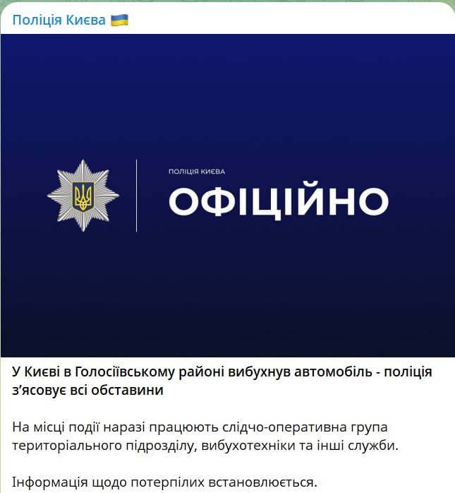 "На месте происшествия работают следственно-оперативная группа территориального подразделения, взрывотехники и другие службы", - говорится в сообщении Нацполиции.