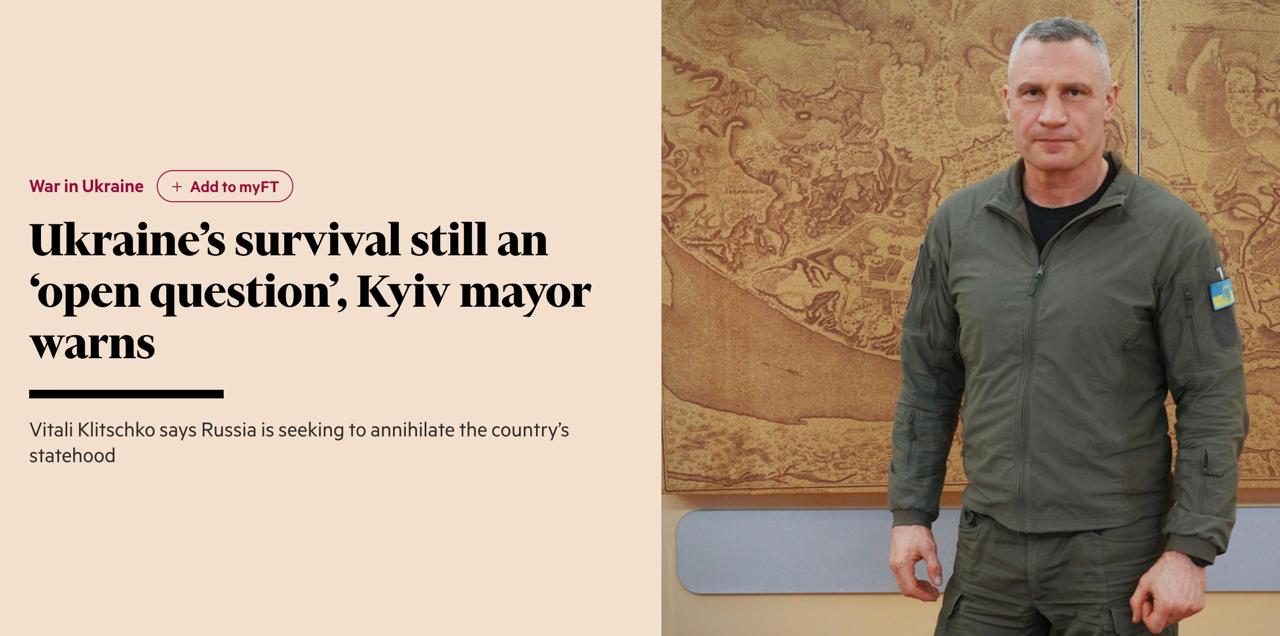 Об этом в интервью газете Financial Times заявил мэр Киева Виталий Кличко.