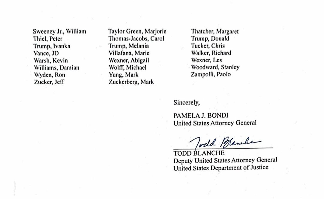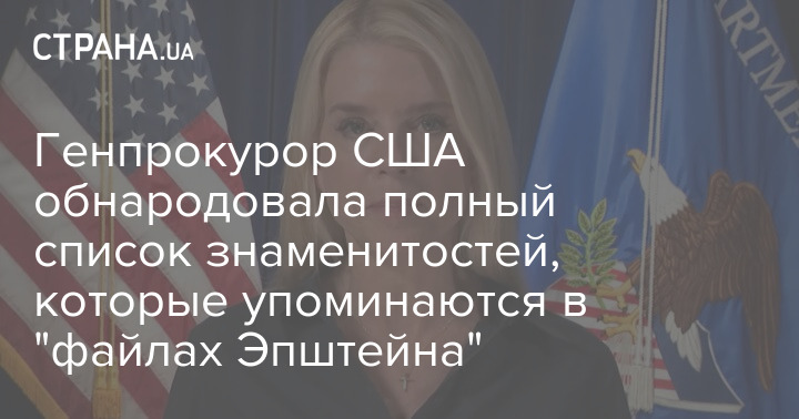 Генеральный прокурор США Пэм Бонди опубликовала полный список знаменитостей, имена которых встречаются в файлах финансиста и секс-преступника Джеффри Эпштейна.