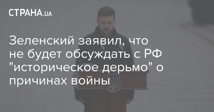 Президент Украины Владимир Зеленский заявил, что не собирается обсуждать с российской стороной исторические причины, которые в итоге привели к войне, как утверждает Москва.