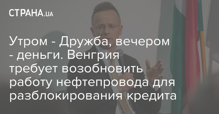 Утром - Дружба, вечером - деньги. Венгрия требует возобновить работу нефтепровода для разблокирования кредита