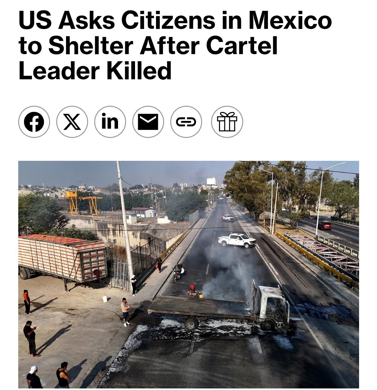 Тем временем, как сообщает агентство Bloomberg, США призвали своих граждан в Мексике укрыться в убежищах после убийства лидера наркокартеля.