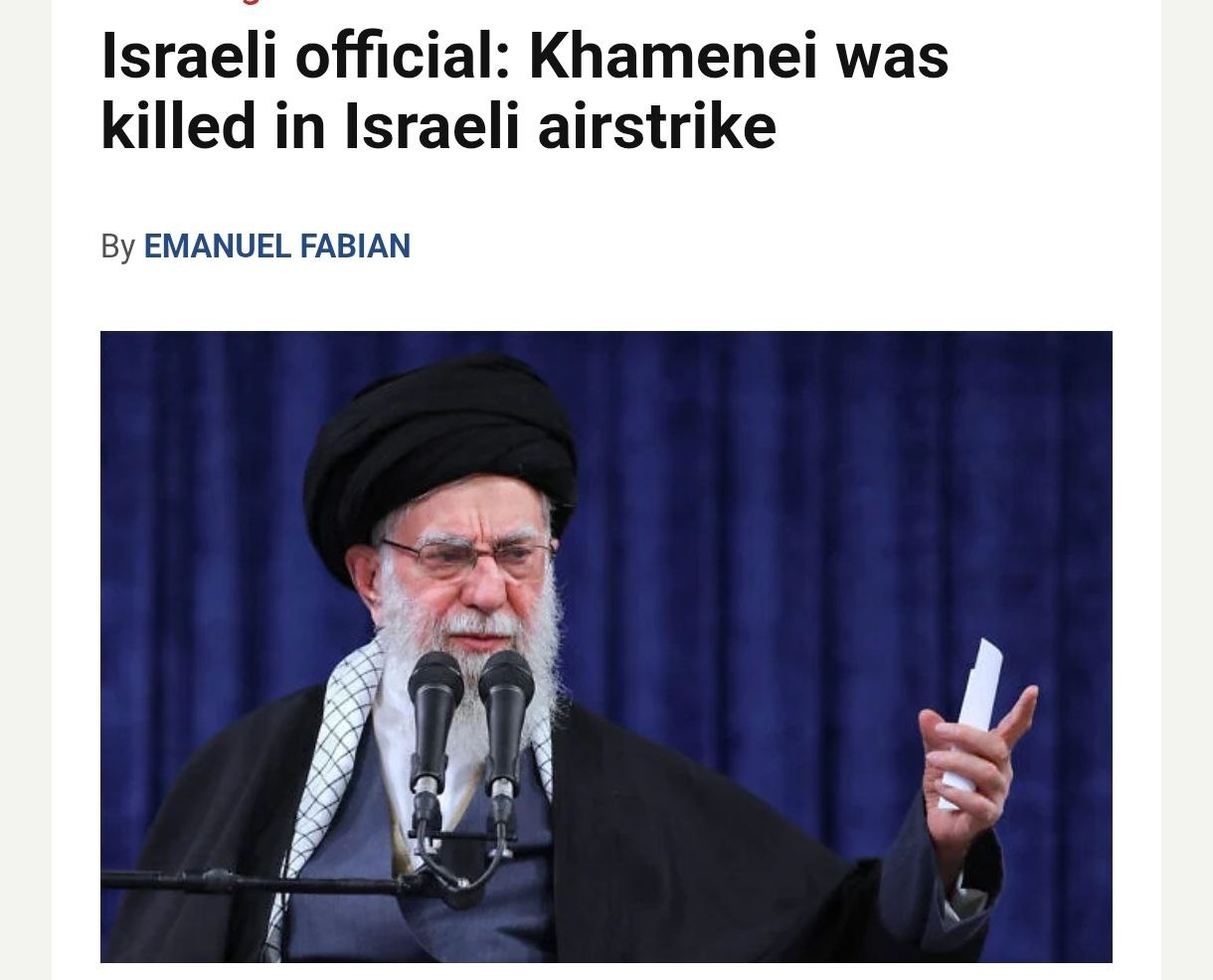 О смерти аятоллы Хаменеи пишет и ряд западных и израильских СМИ. Так, издание The Times of Israel со ссылкой на израильского чиновника утверждает, что верховный лидер Ирана был убит в результате израильского авиаудара.