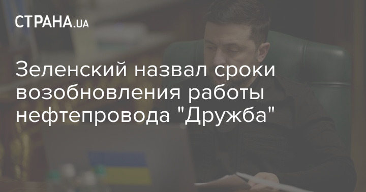 Зеленский назвал сроки возобновления работы нефтепровода "Дружба"