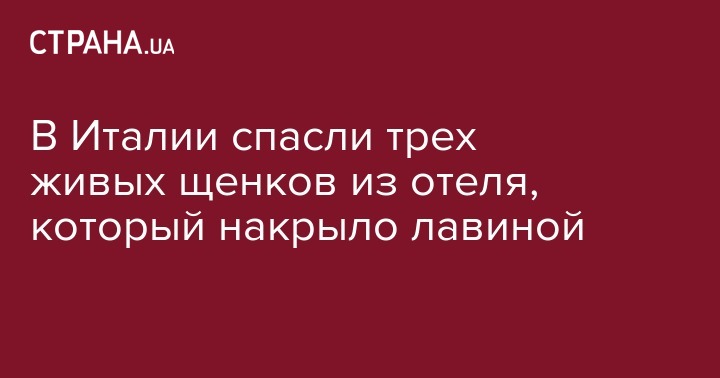 В Италии в отеле Rigopiano, который накрыло лавиной, спасатели нашли трех живых щенков. Об этом сообщает заместитель директора офиса AFP в Риме Фанни Карьер.