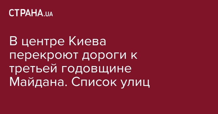 С 18 по 22 февраля в связи с мероприятиями, посвященными третьей годовщине Революции Достоинства и памяти Героев Небесной Сотни центральные улицы в Киеве будут частично перекрыты. Об этом сообщает пресс-служба Киевской городской госадминистрации.