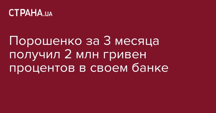 При этом за весь 2016 года Порошенко задекларировал и то меньше этой суммы - 1 928 594 гривен процентов, отмечают "Украинские новости".
