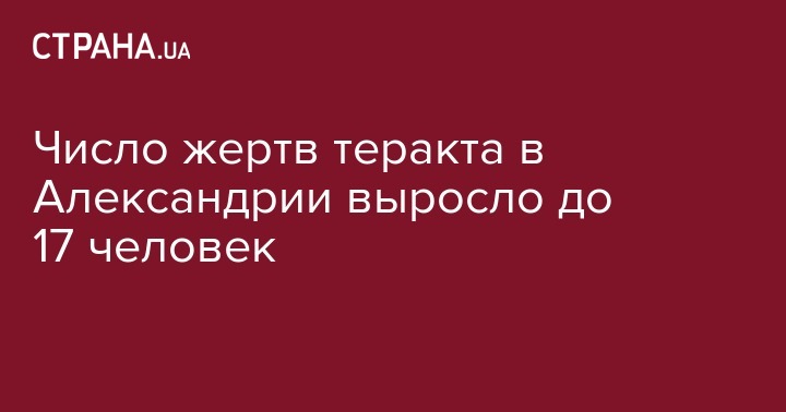 Ранее сообщалось, что количество жертв от теракта в Александрии достигло 11 человек, пострадали не менее 35 человек.