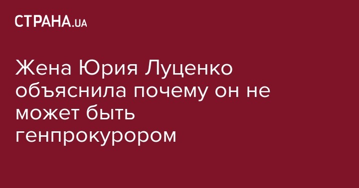 Жена Юрия Луценко объяснила почему он не может быть генпрокурором