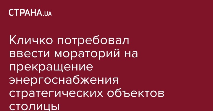 Киевские власти обратились к правительству с просьбой ввести мораторий на прекращение энергоснабжения стратегических объектов столицы. Об этом заявил глава КГГА Виталий Кличко, передает пресс-служба мэрии.