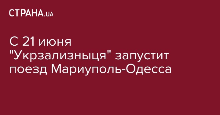 С 21 июня 2017 "Укрзализныця" запустит новый поезд сообщением Мариуполь-Одесса. Он будет курсировать по нечетным дням. Из Одессы в Мариуполь - по четным. Стоимость билетов составит около 163 гривен.