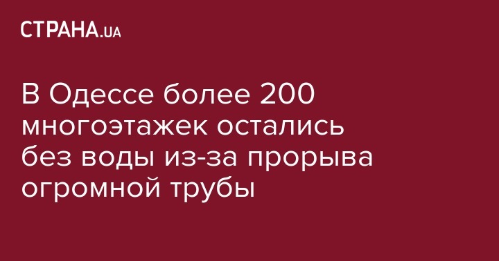 В Одессе более 200 многоэтажек остались без воды из-за прорыва огромной трубы