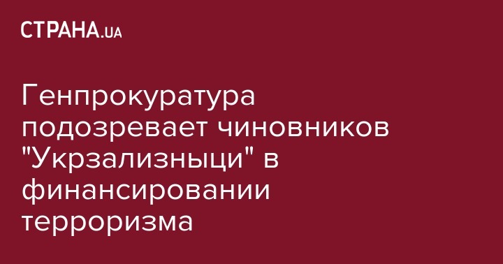В финансировании терроризма подозревает Генеральная прокуратура чиновников публичного акционерного общества "Укрзализныця" . Об этом пишет пресс-служба ведомства.