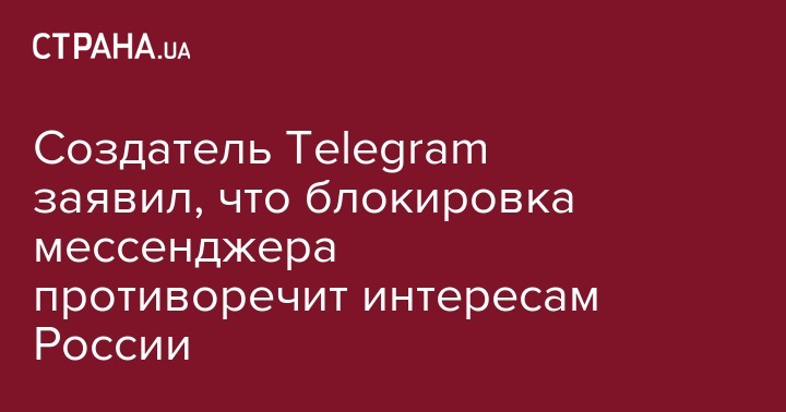 Основатель Telegram Павел Дуров заявил, что блокировка мессенджера, к которому возникли претензии у Роскомнадзора, противоречит интересам России. Об этом пишет РИА Новости.