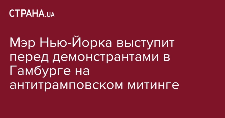 Сегодня, 8 июля, мэр Нью-Йорка Билл Де Блазио выступит перед демонстрантами в Гамбурге, где на фоне масштабных протестов проходит саммит Большой Двадцатки. Об этом сообщает пресс-служба организаторов митинга Hamburg Zeigt Haltung на своей страничке в Twitter.