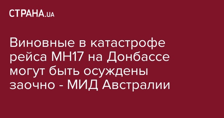 Виновные в крушении рейса МН17 "Малайзийских авиалиний" на Донбассе могут быть осуждены заочно. Об этом заявили в министерстве иностранных дел Австралии, сообщает Reuters.