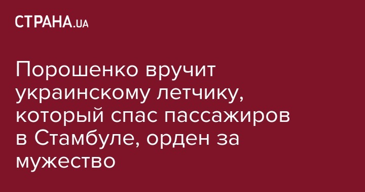 Президент наградит украинского летчика Александра Акопова, который посадил избитый градом самолет в Стамбуле и спас пассажиров. Об этом говорится на странице Петра Порошенко в Facebook.