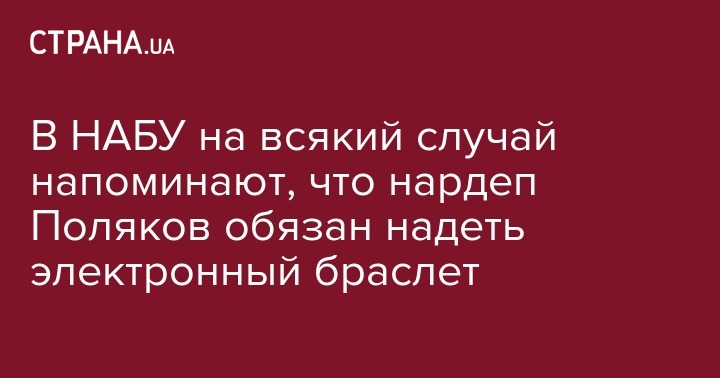 Решение, которым суд обязал народного депутата Максима Полякова надеть электронное средство контроля (браслет) и сдать паспорта для выезда за границу, является законным и должно быть выполнено, заявляют в Национальном антикоррупционном бюро Украины (НАБУ).
