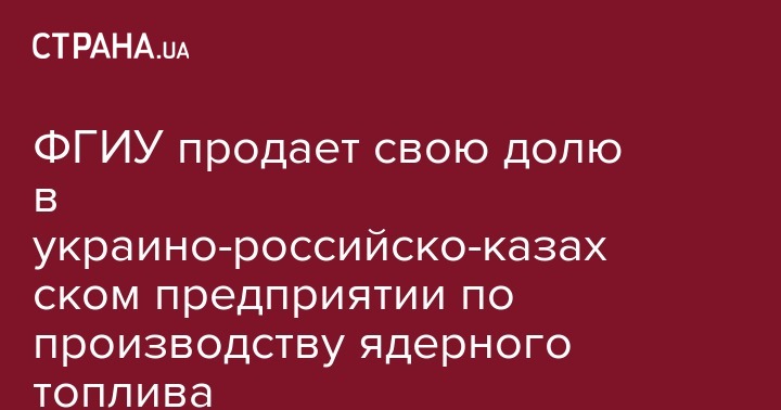 ФГИУ продает свою долю в украино-российско-казахском предприятии по производству ядерного топлива
