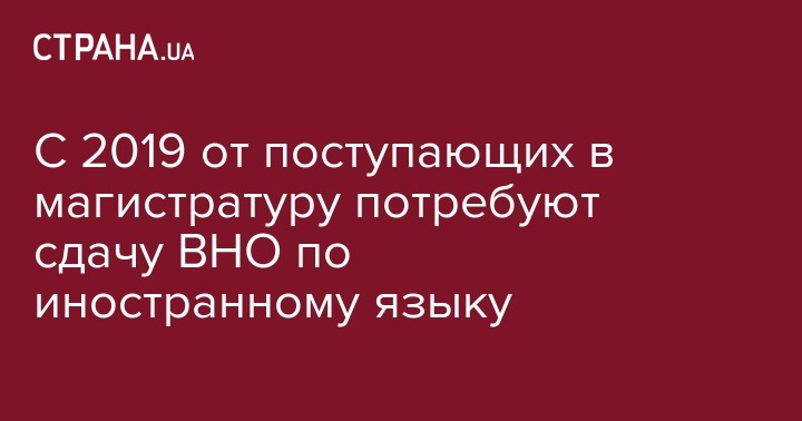"Установить, что вступление на обучение для получения степени магистра на основе степени (образовательно-квалификационного уровня) высшего образования осуществляется по результатам вступительных испытаний, проводимых с использованием организационно-технологических процессов осуществления внешнего независимого оценивания по иностранному (английскому или немецкому, или французскому, или испанскому) языку для поступающих на все специальности с 2019 года", - говорится в нем.