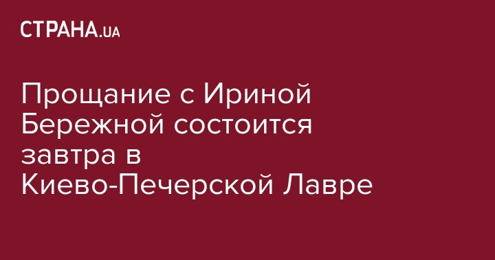 Прощание с Ириной Бережной состоится завтра в Киево-Печерской Лавре