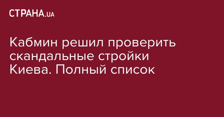 Правительство решило создать рабочую группу, которая проверит законность строительства некоторых объектов Киева, вызывающих общественный резонанс. Об этом говорится на сайте Кабмина.