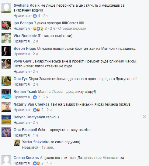 Во Львове в День флага на улице Замарстыновской из-под асфальта начала бить мощная струя воды высотой с двухэтажный дом. Об этом сообщает Varta1 в Facebook.