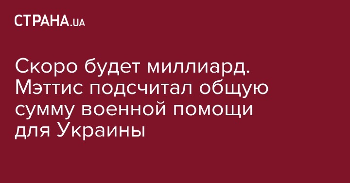 Скоро будет миллиард. Мэттис подсчитал общую сумму военной помощи для Украины