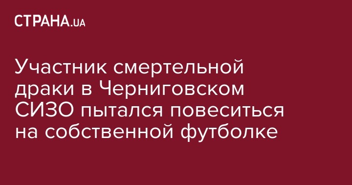 В Черниговском СИЗО после драки, которая закончилась смертью для 51-летнего заключенного, напавший на жертву пытался покончить с собой. По данным ЧЕline, его усиленно охраняют.