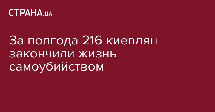 В Киеве за 6 месяцев зафиксировано 216 случаев самоубийств. Об этом сообщает депутат Киевского городского совета Александр Пабат на своей странице в Facebook.