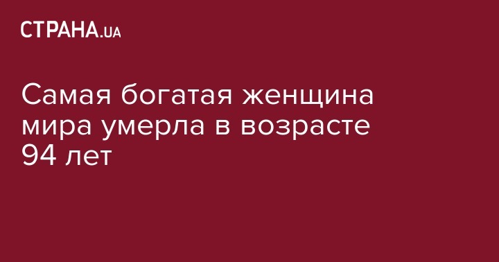 Самая богатая женщина мира умерла в возрасте 94 лет