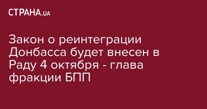 Законопроект об особенностях государственной политики по восстановлению государственного суверенитета Украины над временно оккупированной территорией Донецкой и Луганской областей будет зарегистрирован в парламенте уже в среду 4 октября, прогнозирует председатель фракции "Блок Петра Порошенко" Артур Герасимов.
