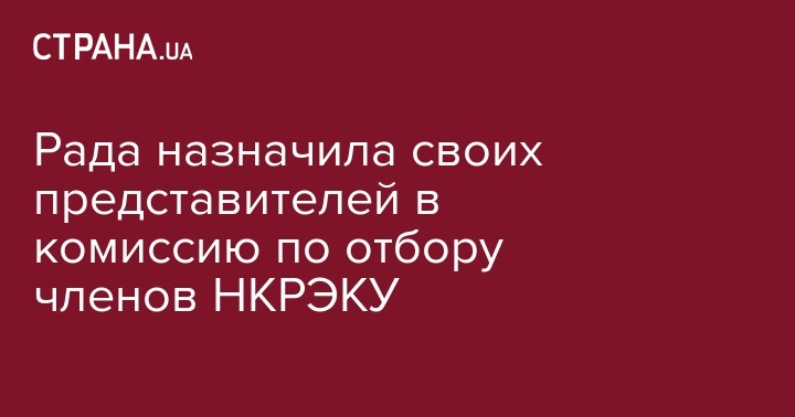 Верховная Рада назначила по своей квоте двух членов конкурсной комиссии по отбору кандидатов на должности членов Национальной комиссии, осуществляющей государственное регулирование в сферах энергетики и коммунальных услуг (НКРЭКУ). Об этом сообщает "112 Украина".