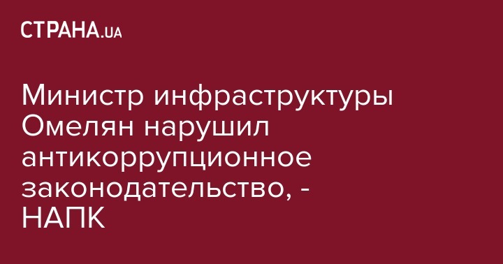 Национальное агентство по предотвращению коррупции (НАПК) выявило нарушения в процедуре назначения сотрудников Министерства инфраструктуры Украины министром Владимиром Омеляном.