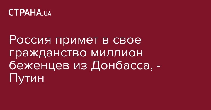 Россия примет в свое гражданство миллион беженцев из Донбасса, - Путин