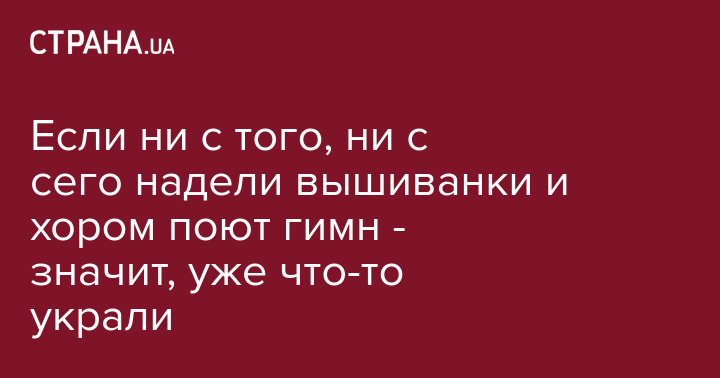 Вот точно так же и во Львовской... либо какой иной. Если ни с того- ни с сего надели вышиванки и хором поют гимна - это значит что уже что-то украли.