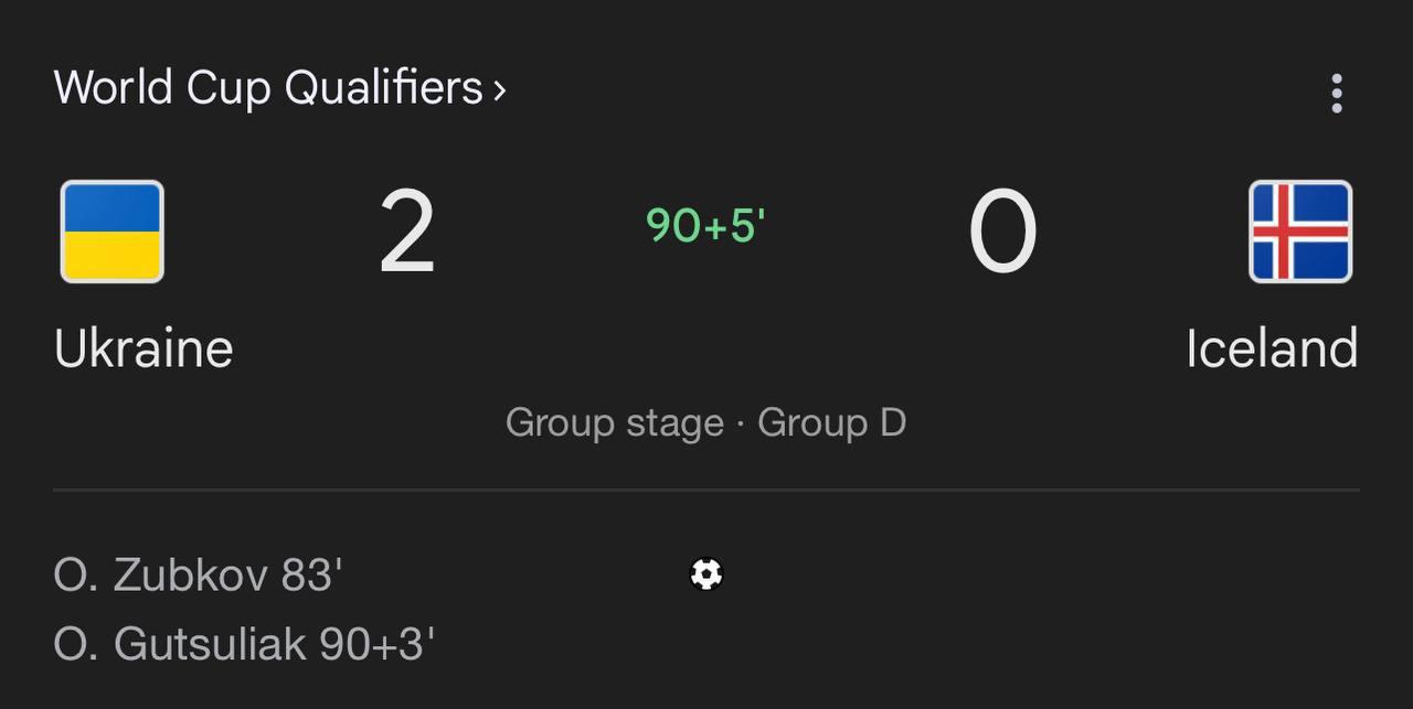 Сборная Исландии пыталась сравнять счет, но в компенсированное арбитром время автор голевой передачи Гуцуляк подвел итог встречи после удара из-за пределов штрафной - 2:0.
