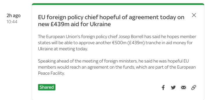 Виступаючи перед зустріччю міністрів закордонних справ країн блоку, Боррель висловив сподівання, що сьогодні вдасться досягти угоди про виділення коштів із Європейського фонду миру.