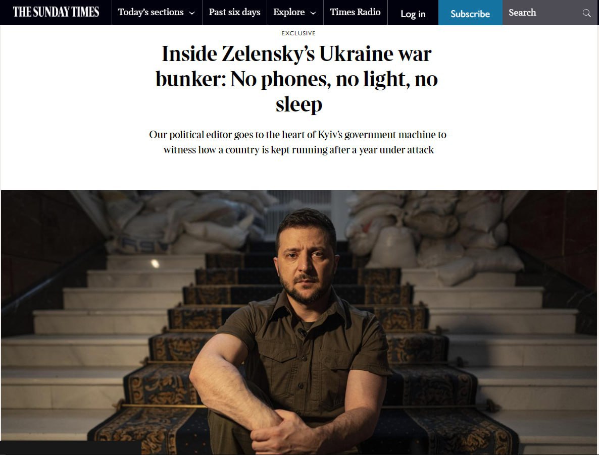 12:02 Ще про життя у підземному бункері президента України з репортажу The Times, який ми сьогодні вже цитували.