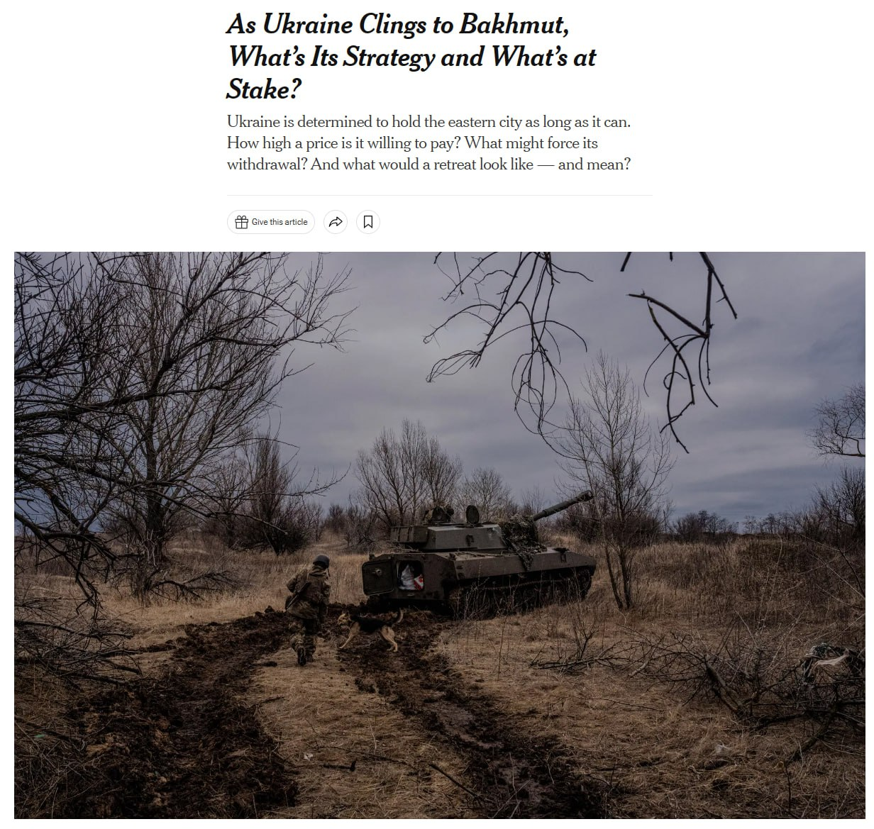 "Чіпляються за місто". The New York Times пише про ознаки хисткого становища ЗСУ у Бахмуті