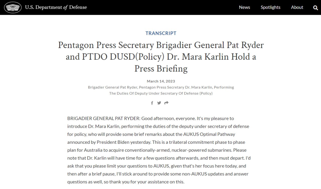 Про це сказав бригадний генерал Пет Райдер під час брифінгу, повідомляє прес-служба Пентагону.